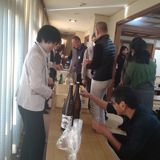 第2部では、白糸滝養魚場の鱒のなめろうと、富士高砂酒造の日本酒・ヨーグルト酒・甘酒と、これらのお酒の仕込み水をいただきながらの交流会となりました。